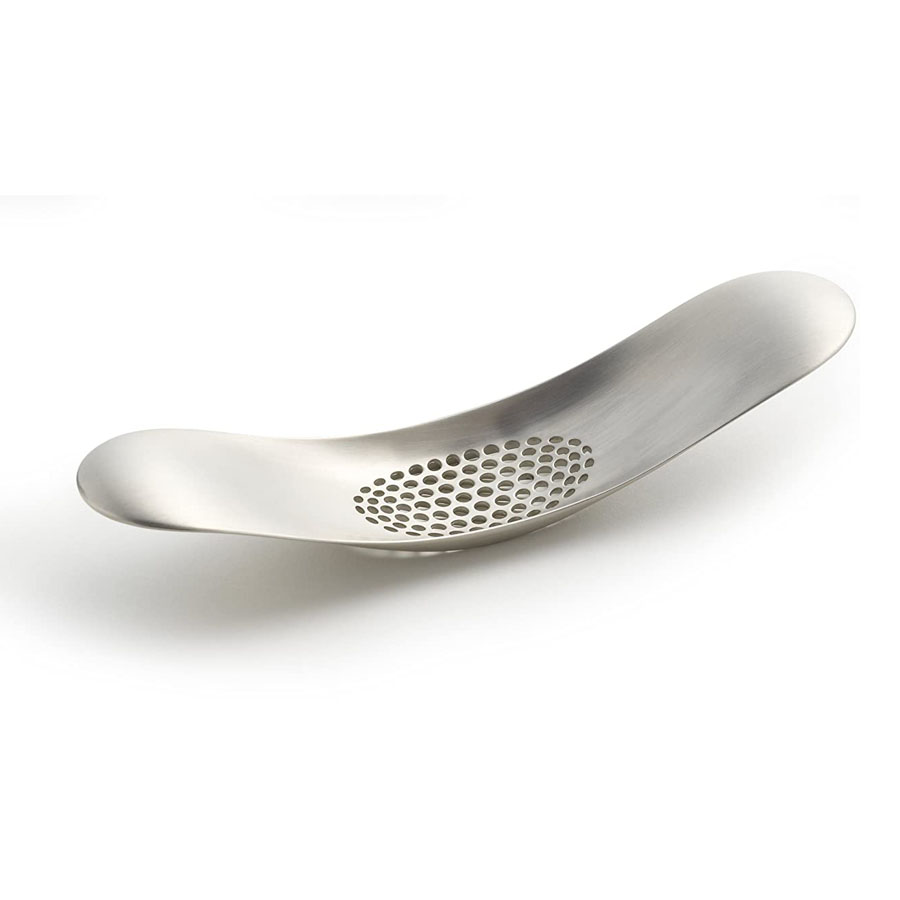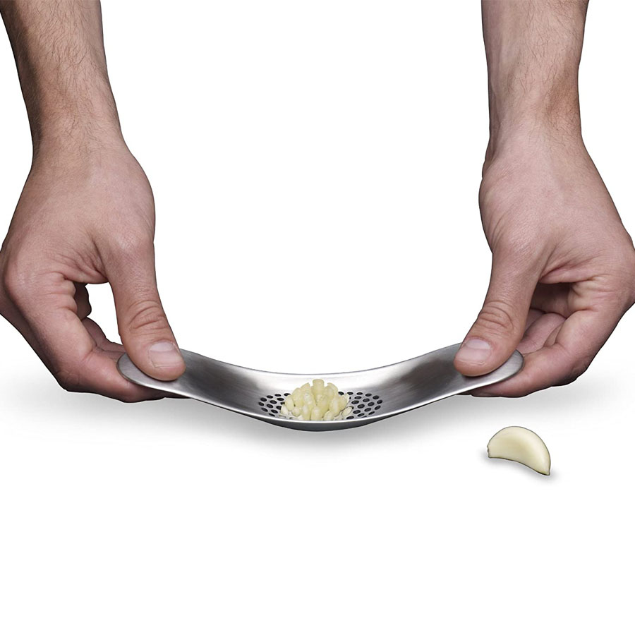 Simplemente use el Rocker 100 para triturar su ajo, luego coloque una cuchara o raspe de la prensa curva con facilidad para agregar a su cocción. También se pueden triturar dientes adicionales en esta etapa antes de vaciarlos.Rocker 100, hecho de acero inoxidable 18/8 cepillado, se puede enjuagar con agua corriente después del uso y se usa para frotar suavemente las manos y los dedos para reducir el olor a ajo (se piensa que el acero inoxidable elimina los olores fuertes que quedan de la manija) ajo).Fácil de limpiar con agua corriente, pero también es apto para lavavajillas.¡Un aparato de cocina que cambiará el juego y revolucionará tu trituración de ajo!