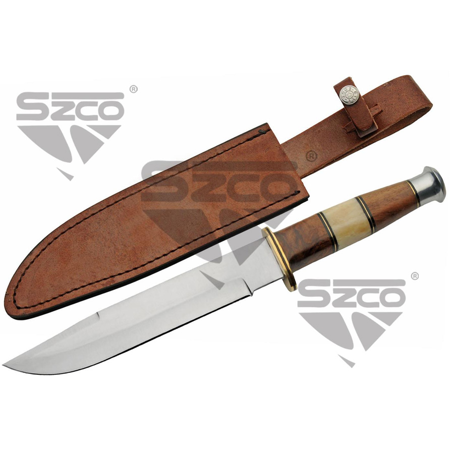SZCO – CUCHILLO DEPORTIVO – HK 14.5″ BROWN BARK HUNTER CON VAINA DE CUERO